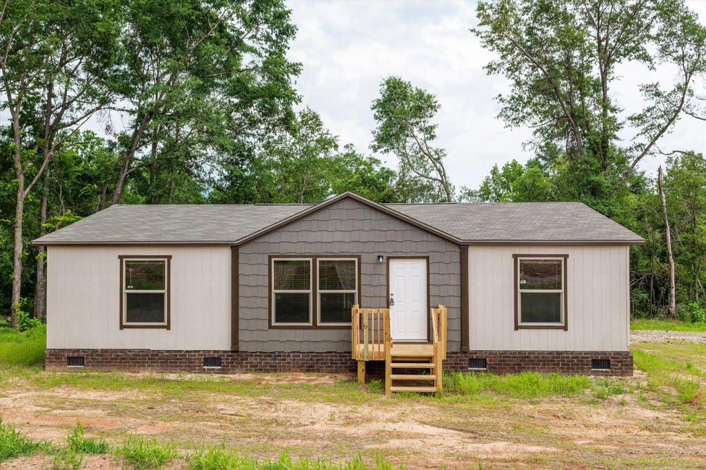 Brand New 3BR/2BA Home on 1.12 Acres - Move-In Ready! Welcome to your new home! This brand-new mobile home features 3 spacious bedrooms and 2 full bathrooms, thoughtfully placed on a 1.12-acre lot for extra space. Built on a solid brick foundation, this home blends comfort, functionality, and long-lasting quality. Inside, you'll find an open-concept living area and a modern kitchen equipped with stainless steel appliances—including the refrigerator. Enjoy the outdoors from both the front and back porches, perfect for relaxing or entertaining under the open sky. With plenty of yard space for gardening, recreation, or adding future improvements, this property is a rare opportunity to enjoy peaceful living in a brand-new home.