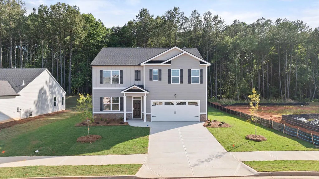 1255 Birch Circle is located less than ten minutes to I-20 and local to shopping, dining venues, and recreation. We welcome military families to take the short 15-minute commute from Fort Eisenhower to call The Estates at Deer Hollow Home. Built for comfort and style, this home is equipped with premium features such as Hardi board siding, energy-saving blinds throughout, natural gas tankless water heater, craftsman style exterior shutters, landscaped lawn, three zone Hunter irrigation system, and gutters. With amenities you desire such as a cabana style pool, pickle ball courts, playground, picnic area, and access to the Euchee Creek greenway, you don't have to go far to have fun being active. Inside the Hayden plan, nine-foot ceilings and double-pane, energy efficient windows allow plenty of natural lighting to illuminate each space. Designed to endure damp and/or humid environments, Mohawk Ballard LVP throughout the main level is effortless, moisture-resistant and elevates any room in your home. The first level of this open concept layout opens with the formal dining room just off of the main entrance. Further down the foyer, a well-appointed kitchen with gas range and large granite top island overlooks a convenient breakfast area, and formal living room. Completing the first floor and just beyond the living room, is a guest suite or home office, full bathroom, coat closet, and garage access. Upstairs is a true retreat with a second living room, four spacious bedrooms, laundry room, and two additional bathrooms. The expansive owner's suite offers a large walk-in closet, en-suite bathroom featuring a garden tub, separate shower, and private water closet. Here, you will never be too far from home with Home Is Connected. Enjoy modern conveniences with smart home features including a doorbell camera, smart lock, and Wi-Fi-enabled thermostat. Illuminated with the state-of-the-art Deako Lighting platform, you have the freedom to personalize your lighting to your lifestyle. Make sure to call the listing agent for current promotions through the seller's preferred lender! Projecting completion in October. Pictures, photographs, colors, features, and sizes are for illustration purposes only and will vary from the homes as built.