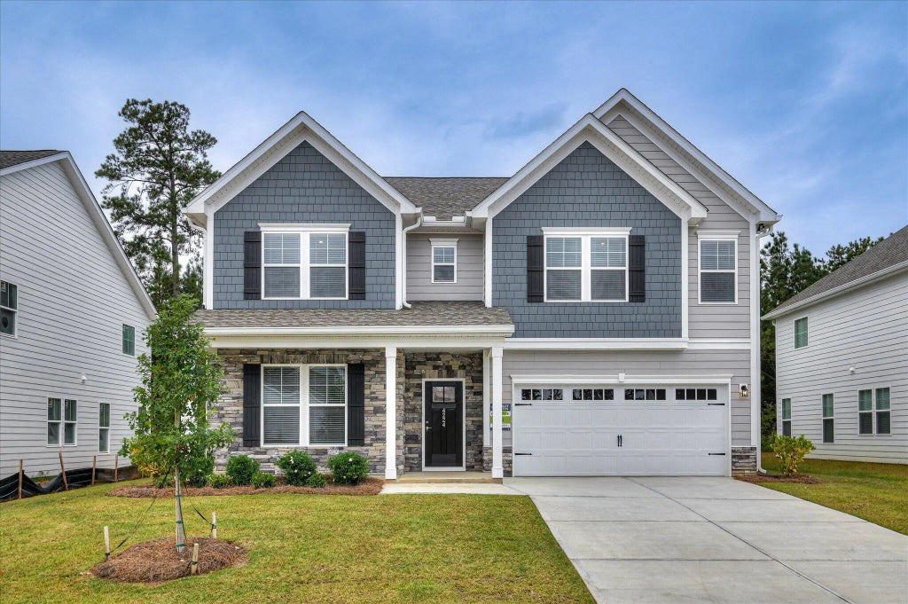 This beautiful Rembert plan offers tons of space everywhere you turn. Entering from the large covered front porch, you will feel welcomed into the large foyer. The flex room near the front entryway makes for a perfect formal dining setting, and the pass-through Butler's Pantry is every coffee lover's dream. The all-encompassing kitchen finished with a large island, soft close cabinets, stainless steel appliances, quartz counters, designer tile backsplash and more. You will love prepping meals in your design-inspired kitchen! Overlook the expansive family room that you are sure to enjoy countless nights entertaining or just relaxing. Retreat to your primary suite on the main level, complete with large private bathroom with deep walk-in closet. Up the stairs, you will find 3 additional large bedrooms, two full bathrooms, storage space and a stunning loft that is perfect for any man cave, playroom, or fitness area. Sip coffee in the morning or Finish your day on the covered back patio. Each home is built using energy efficient construction methods and are independently inspected and tested by The Home Energy Rating System (HERS) Index. New Community Pool is under construction, and future amenities include covered cabana, walking trails, recreation fields. With the Rembert's captivating design, thoughtful features, and generous space, this home is a dream come true. Don't miss the opportunity to make it yours. Your future awaits! Stock photos used and design finishes and selections may differ. Lot 193. Open House Tours are available for this home.