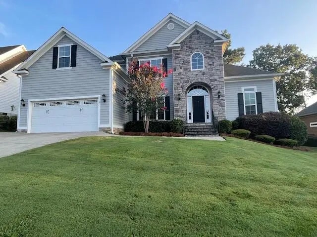 Stone entrance leads in to two story foyer. Large dining room with with open concept living to the great room and kitchen. Beautiful hardwoods throughout living areas. Kitchen boasts granite counters, tile backsplash and stainless steel appliances. Primary bedroom on main level with on-suite bath and walk in closet. Primary bedroom also has access to back deck. Additional bedroom with full bath downstairs. Upstairs are 3 large. additional bedrooms and a full jack and jill bathroom. Large deck overlooking fenced in back yard perfect for kids or family pet. Close to nearby shopping, dining and entertainment. Excellent Columbia County Schools. Close proximity to Ft Eisenhower.