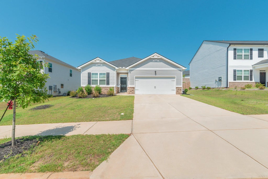 Take advantage of a 4.99% VA assumable loan with this beautiful home at 345 Expedition Drive in North Augusta's Rushing Waters community! This move-in ready, single-story home offers 4 bedrooms, 2 bathrooms, and 1,774 square feet of comfortable living space. As you enter, you're greeted by a warm and inviting foyer that opens into an open-concept living space—perfect for both relaxed everyday living and effortless entertaining. The heart of the home is the beautifully appointed kitchen, featuring sleek granite countertops, a gas stove, built-in microwave, dishwasher, and a spacious island that overlooks the dining area and great room. A gas fireplace adds warmth and charm to the space! The owner's suite offers a peaceful retreat with a large walk-in closet and an ensuite bath complete with dual vanities and granite finishes. Three additional bedrooms are well-sized, providing ample space for family, guests, or a home office. Step outside to the covered back porch, perfect for enjoying quiet mornings or hosting evening gatherings. You'll also appreciate the tankless water heater, fencing, and blinds throughout! Located just minutes from Fort Eisenhower, Costco, SRP Park, Top Golf, Dave & Buster's, shopping, dining, and I-20 Exit 1, this home offers easy access to everything the CSRA has to offer—while still tucked away in a quiet, community-focused neighborhood. Don't miss this opportunity to own a beautifully designed home in one of North Augusta's most convenient and desirable new communities with a neighborhood pool! All room dimensions should be independently verified if size is a determining factor.