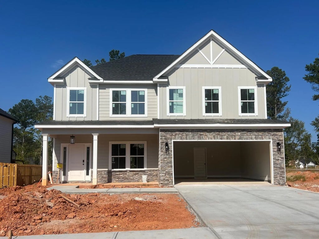 Outdoor living is a highlight with covered front and back porches, including a wood-burning fireplace on the rear porch—perfect for year-round enjoyment. LVP IN FOYER, DINING, KITCHEN, BREAKFAST ROOM, AND GREAT ROOM. TILE MASTER SHOWER W/ FIBERGLASS PAN. TILE MASTER BATH FLOOR AND AT MASTER TUB SURROUND. KITCHEN HAS TILE BACKSPLASH. GRANITE/QUARTZ TOPS IN KITCHEN AND MASTER BATH. GREAT SIZE SECONDARY BEDROOMS IN THIS HOME. **ALL OPTIONS IN THE HOME CAN BE CHANGED PRIOR TO AN AGREED UPON CONTRACT AT THE BUILDERS DISCRETION.WP INCLUDES 3.5 ACRE PARK ,WALKING TRAILS, SIDEWALKS, STREET TREES, STREET LIGHTS, PLAYGROUND, FIRE PIT & POOL
