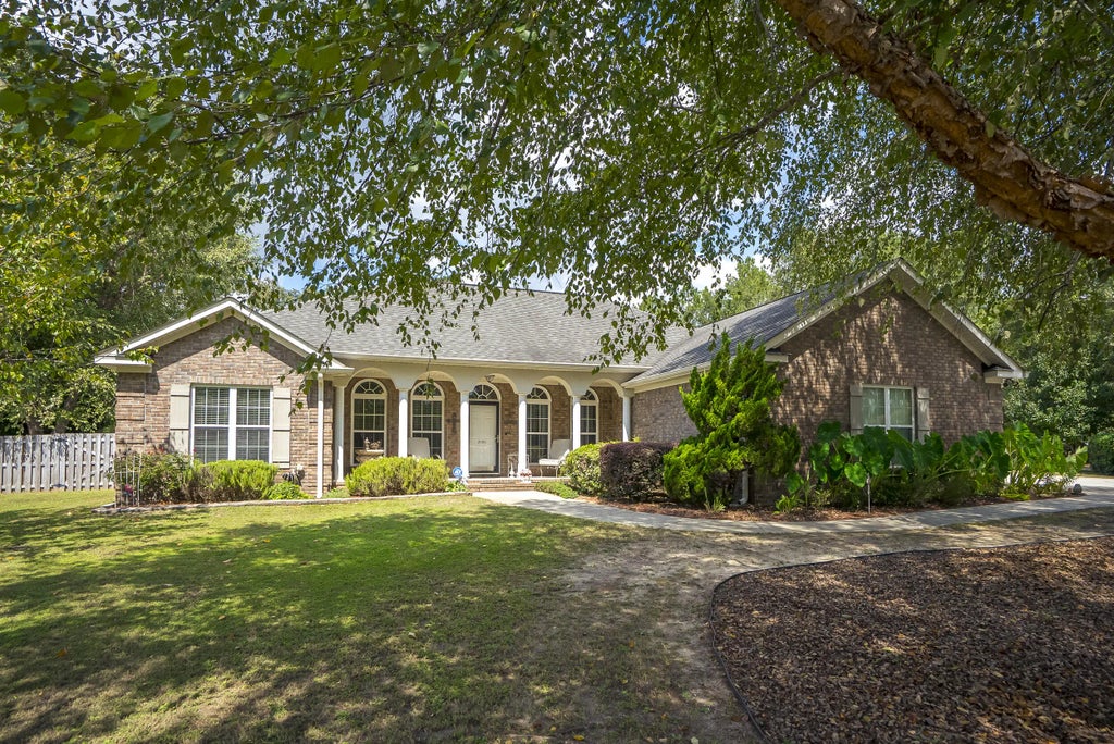 Welcome to 2686 New Hope Circle where this house checks all of the boxes of things that. you are looking for. Well maintained brick ranch with 3 bedrooms, 2 full baths, and one half bath with side entry 2 car garage. As you walk up, the home has a rocking chair porch with foyer with arched doorways. To the left is office area and to the right is dining room for old school charm. Great room has cathedral ceilings and flanked by fireplace on exterior side. Hardwood floors in most of house. The guest wing has 2 spacious bedrooms and one full bath. The Great room has access to TV room where you can casually hang out and conversate. The Kitchen has granite countertops and tons of cabinet space. Eating area at counter as well as room for dining table and chairs. Down the hall is 1/2 bath of larger size and laundry which leads to garage. The primary bedroom is huge and coffered ceilings. Private sitting area in room as well as all furniture needed. Primary bath has walk in shower and garden tub. Step outside and this is where your lifestyle begins...walk in lean to barn with concrete floors and electric. Separate shed for gardening supplies. Pergola covered sitting area for relaxing under the moon. Raised beds and fencing to keep out varments as well. Muscadine vines in place. Bring your recipes to this mini homestead close to airport, Fort Gordon , Vogtle, and International Paper.