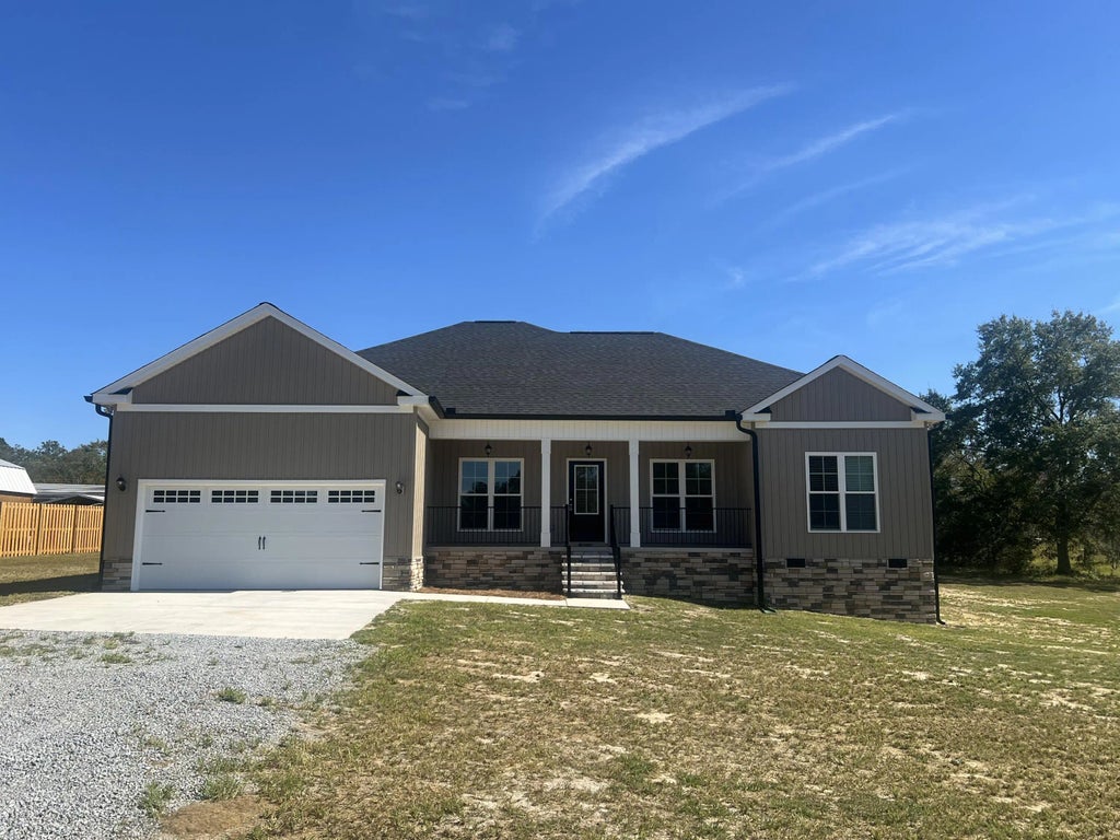 This beautifully crafted new construction home blends thoughtful design with modern convenience, offering over 1,940 square feet of stylish living space. With 4 bedrooms and 2 baths, it welcomes you from the start with a charming front porch—perfect for morning coffee or evening chats. Inside, the open floor plan features a cozy gas log fireplace in the living room and a spacious eat-in kitchen complete with granite countertops, stainless steel appliances, a breakfast bar, and durable LVP flooring throughout the main living areas. A separate dining room adds elegance for formal gatherings. The expansive owner's suite is a true retreat, showcasing a tray ceiling and a luxurious en-suite bath with a garden tub, walk-in shower, dual granite vanities, and a generous walk-in closet. A split-bedroom layout ensures privacy, with three additional bedrooms and a full bath thoughtfully positioned on the opposite side of the home. Additional upgrades include a tankless water heater, gutters, and a 304-square-foot screened-in back porch—ideal for year-round relaxation. Located in close proximity to I-20, this move-in-ready home offers both comfort and convenience, with quality craftsmanship and upscale finishes throughout.