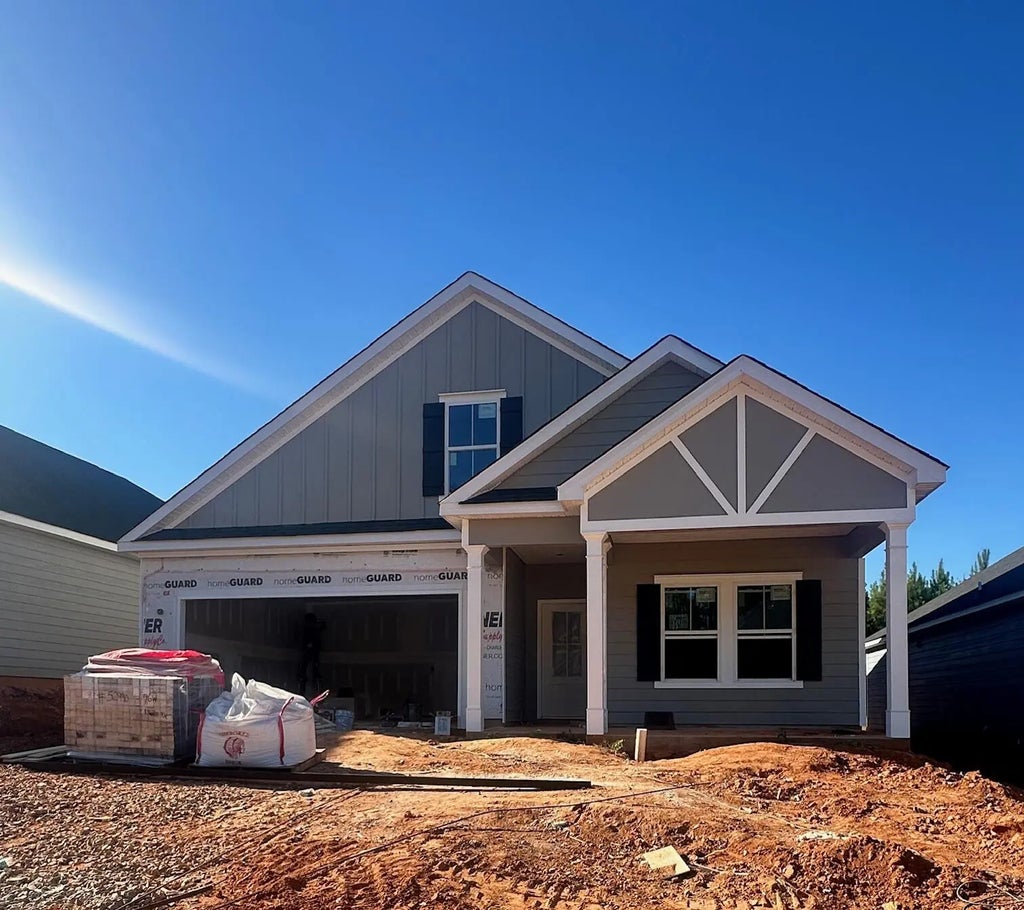The Finlay plan by South Georgia Homes is a beautifully designed single-level home offering functional living with stylish finishes throughout. Nestled on a homesite that backs up to green space, this 3-bedroom, 2-bath home delivers comfort, convenience, and charm in every detail. Step inside to find durable LVP flooring flowing through the foyer, living room, kitchen, and dining area. The open-concept living room is filled with natural light and connects to a gourmet kitchen featuring granite countertops, a trendy backsplash, stainless steel appliances, and luxury lighting fixtures. Perfect for both entertaining and everyday living. The spacious owner's suite is a true retreat, complete with a spa-inspired ensuite bath featuring his and her vanities, a soaking tub, and a separate walk-in shower. Two additional bedrooms share a full hall bath, ideal for guests or family. Enjoy peaceful mornings or relaxing evenings on the covered front and back porches, overlooking a meticulously landscaped yard with a full irrigation system for easy maintenance. Located in The Sanctuary, a thoughtfully planned community offering a community garden, walking trail, playground, sidewalks, and street lighting, you'll enjoy both comfort and connection. Conveniently situated near shopping, dining, multiple parks, medical facilities, and SRS, this home offers the lifestyle you've been looking for. Don't miss your chance to own this brand-new gem—schedule your private tour today!